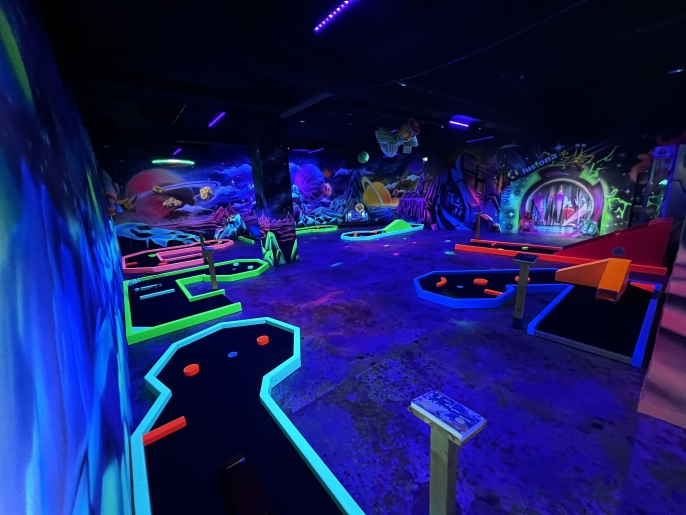 Mini Golf interactivo de 8 hoyos, ideal para disfrutar en familia entre risas y desafíos.