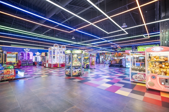 Arkade eremua, redemption, kirol eta azken belaunaldiko makinekin, bizio hutsa direnak.